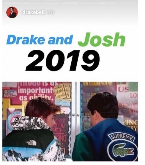 Sí, en serio, no estamos bromeando. En Instagram el actor y músico compartió una foto en donde aparece junto a Josh Peck y el texto 'Drake y Josh 2019', por lo que se espera que este año tenga su estreno el nuevo programa.