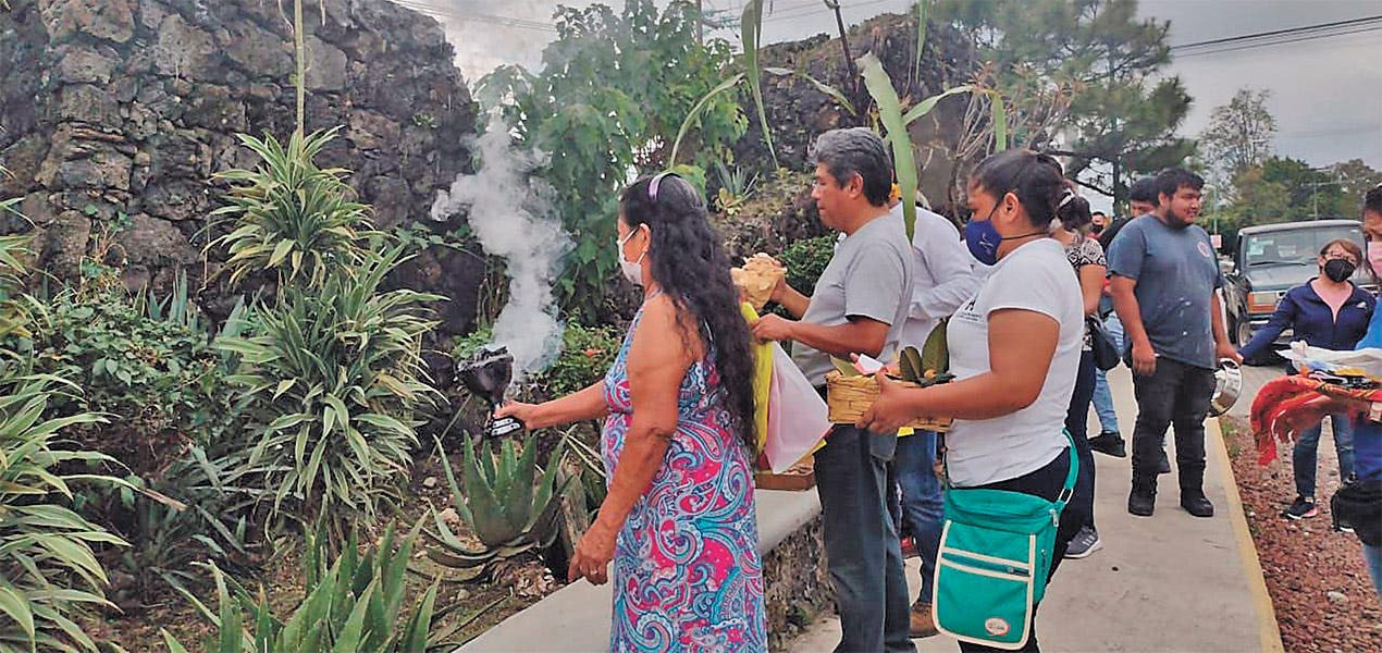 Cuernavaca.- En punto de las 13:00 horas en la entrada del barrio de la Santa Cruz, de Ocotepec, se llevó a cabo la ceremonia tradicional Ofrenda a los Aires en la que se agradece por las lluvias y las buenas cosechas.