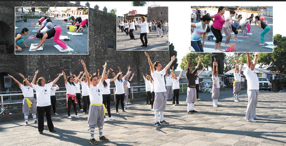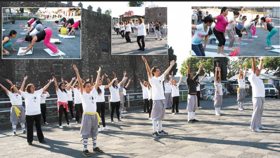 Como parte de las actividades de la Ecozona, el día de ayer se realizó ‘Yoga por la paz’, en el que un grupo de mujeres y hombres practicaron esta disciplina en la explanada frente al Palacio de Cortés; además, hubo práctica de Tai Chi; ambas disciplinas combinan movimientos ligeros, meditación y respiración para estar en armonía.