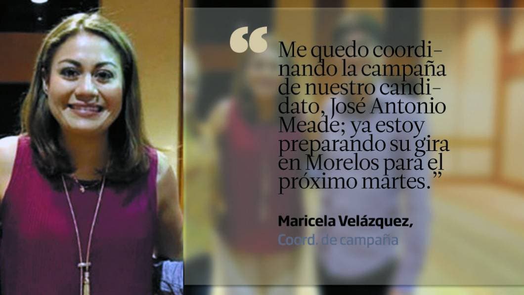 Me quedo coordinando la campaña de nuestro candidato, José Antonio Meade; ya estoy preparando su gira en Morelos para el próximo martes." Maricela Velázquez, Coord. de campaña