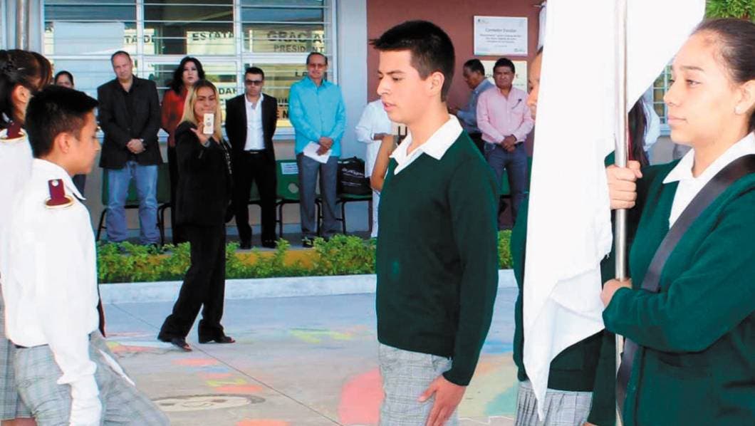 Estafeta. El alcalde Juan Hernández Limnochi encabezó la ceremonia del programa Sembrando Paz y develó placa de plantel promotor de paz en una telesecundaria.