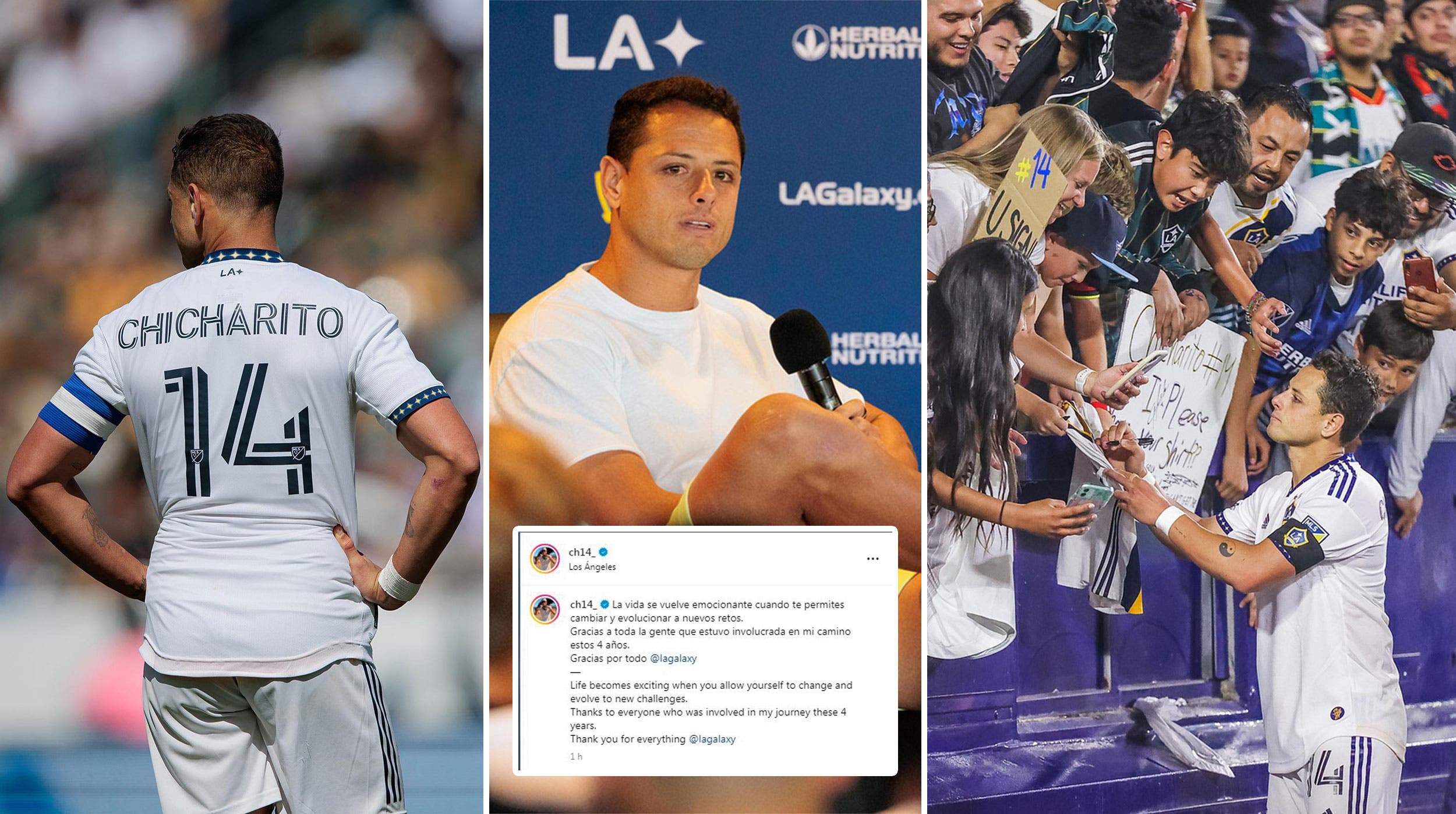 “La vida se vuelve emocionante cuando te permites cambiar y evolucionar a nuevos retos. Gracias a toda la gente que estuvo involucrada en mi camino estos 4 años. Gracias por todo LA Galaxy”, fue el mensaje con el que Chicharito se despidió del equipo angelino.