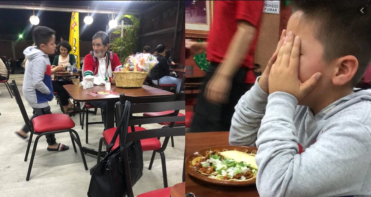 “Se dirige a él y le pregunta de qué los quiere (los tacos), se los pide al mesero y estaba muy al pendiente de que se los llevaran rápido. En eso, de repente empieza a llorar y le pregunto ‘¿por qué?’ y me dice ‘es que mira mamá, está cenando tan a gusto’", narró Karen Espinosa en Facebook.
