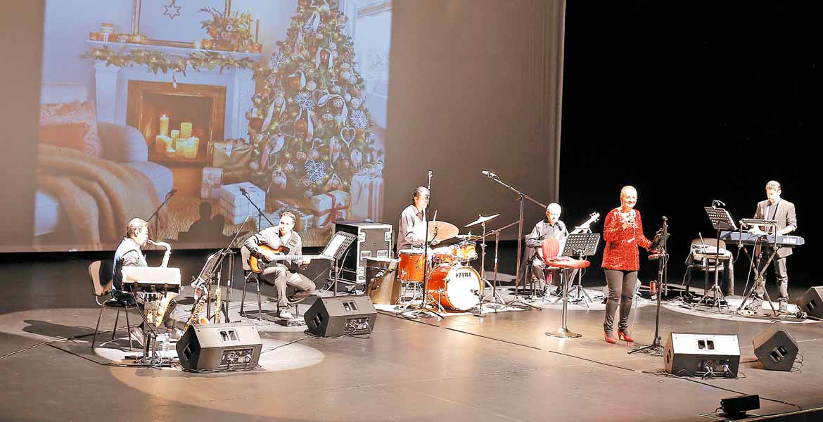 Los presentes escucharon villancicos tradicionales como “Noche de Paz”, “Blanca Navidad”, “Campana sobre campana”, entre otros, mientras detrás de los músicos, una pantalla proyectaba imágenes navideñas.