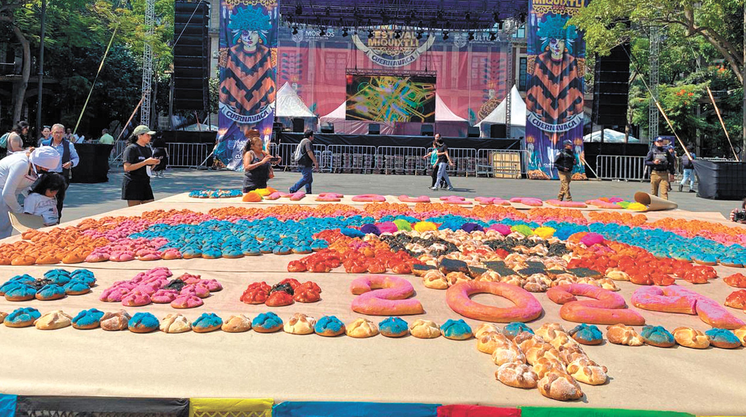 En el marco del Festival Miquixtli, decenas de morelenses se reunieron en la Plaza de Armas “General Emiliano Zapata Salazar” para presenciar la creación de un mosaico elaborado con pan de muerto artesanal, una actividad que organizó la Secretaría de Cultura, en colaboración con la Asociación de Productores de Pan Artesanal de Cuernavaca.
