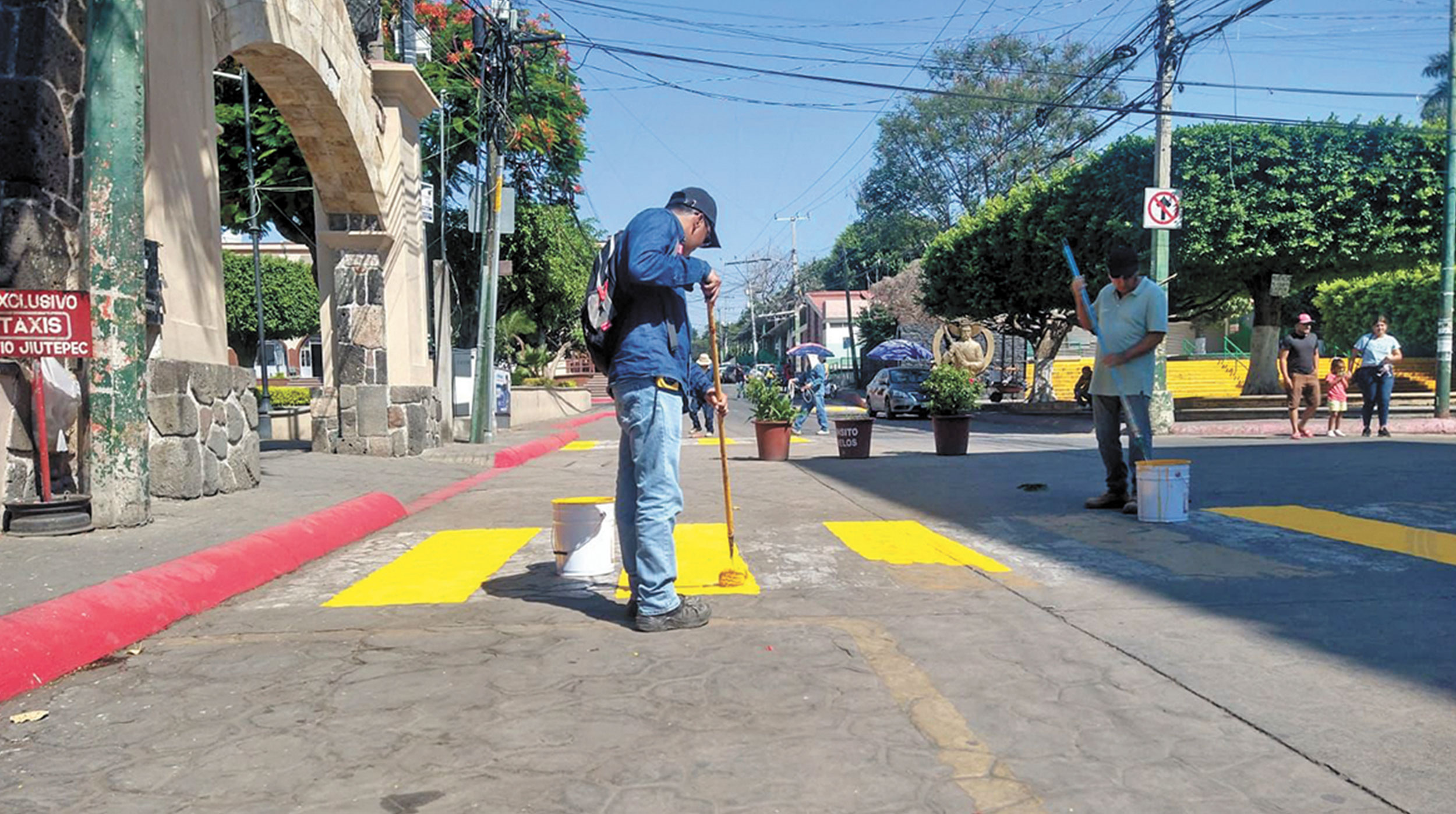 Por instrucciones del presidente municipal Rafael Reyes Reyes, personal operativo de la secretaría de Desarrollo Sustentable, Obras y Servicios Públicos, Predial y Catastro del Gobierno con Rostro Humano de Jiutepec, lleva a cabo trabajos de embellecimiento de vialidades del primer cuadro.