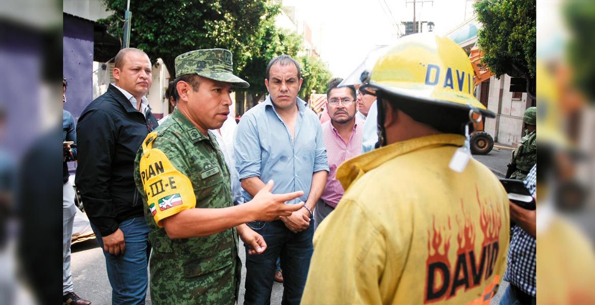 Recorrido. El alcalde Cuauhtémoc Blanco supervisó el recuento de los daños acompañado por personal castrense.