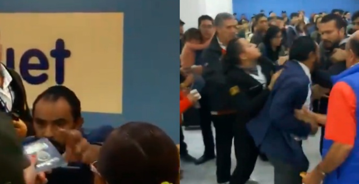 Al parecer, los pasajeros reclamaban al empleado por un vuelo atrasado, pero éste perdió los estribos y reaccionó violentamente.