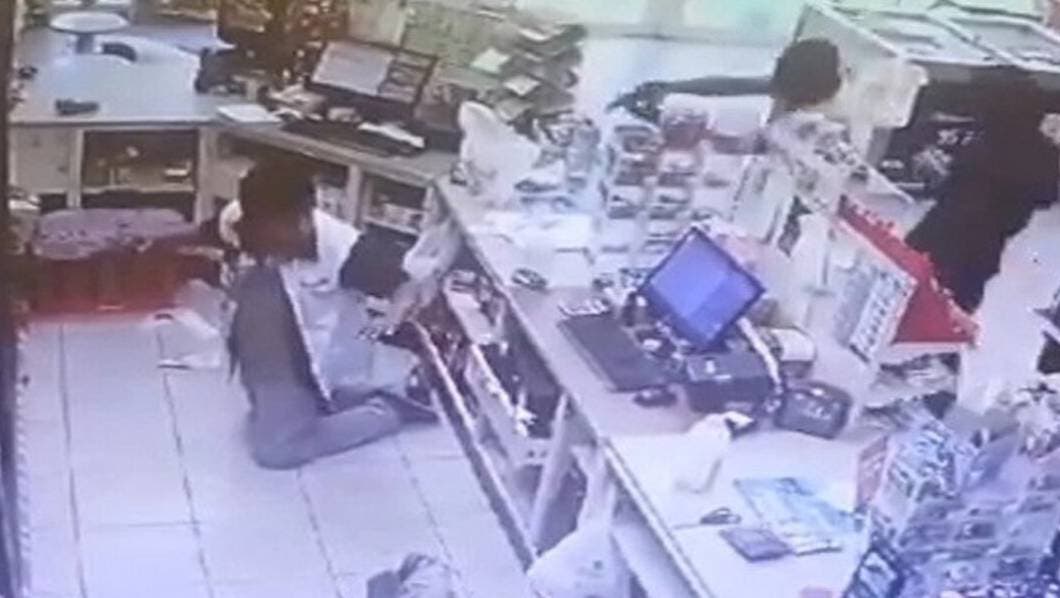 En la grabación, tomada presuntamente el domingo 26 de mayo, se aprecia cómo tres delincuentes ingresan al establecimiento, amagan al joven y vacían las cajas registradoras.