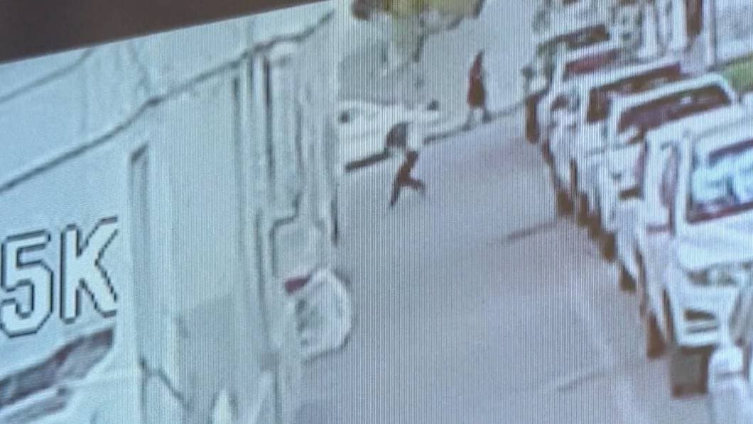 En el video se aprecia al hombre salir de un vehículo a toda prisa. Lleva los brazos extendidos como si fuera recibir un objeto que está cayendo.