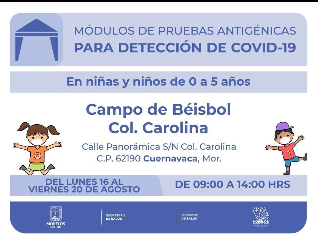 Para niñas y niños de cero a 5 años, así como para el resto de la población estará disponible el módulo de atención integral en el campo de béisbol, en la colonia Carolina, municipio de Cuernavaca.