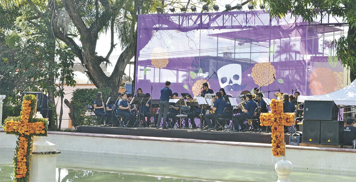 En el marco del festival Miquixtli 2019, se presentó la Banda Sinfónica Juvenil de Cuernavaca en el Centro Cultural Jardín Borda, que se vistió de gala el pasado fin de semana con las celebraciones del Día de Muertos y abrió sus puertas a dicha agrupación para deleite de los visitantes.