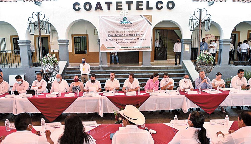 Reunión. El Gobernador Cuauhtémoc Blanco, acompañado por su gabinete, dio conocer al alcalde de Coatetelco las obras que se desarrollarán, algunas provenientes del Fondo de Aportaciones Múltiples.