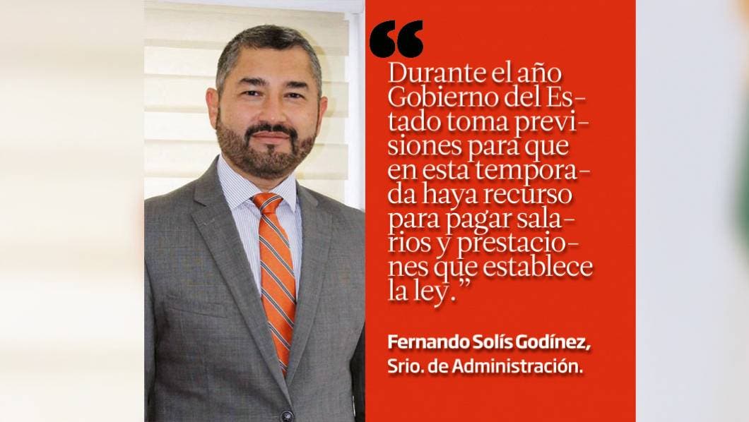 "Durante el año Gobierno del Estado toma previsiones para que en esta temporada haya recurso para pagar salarios y prestaciones que establece la ley." Fernando Solís Godínez, Srio. de Administración.