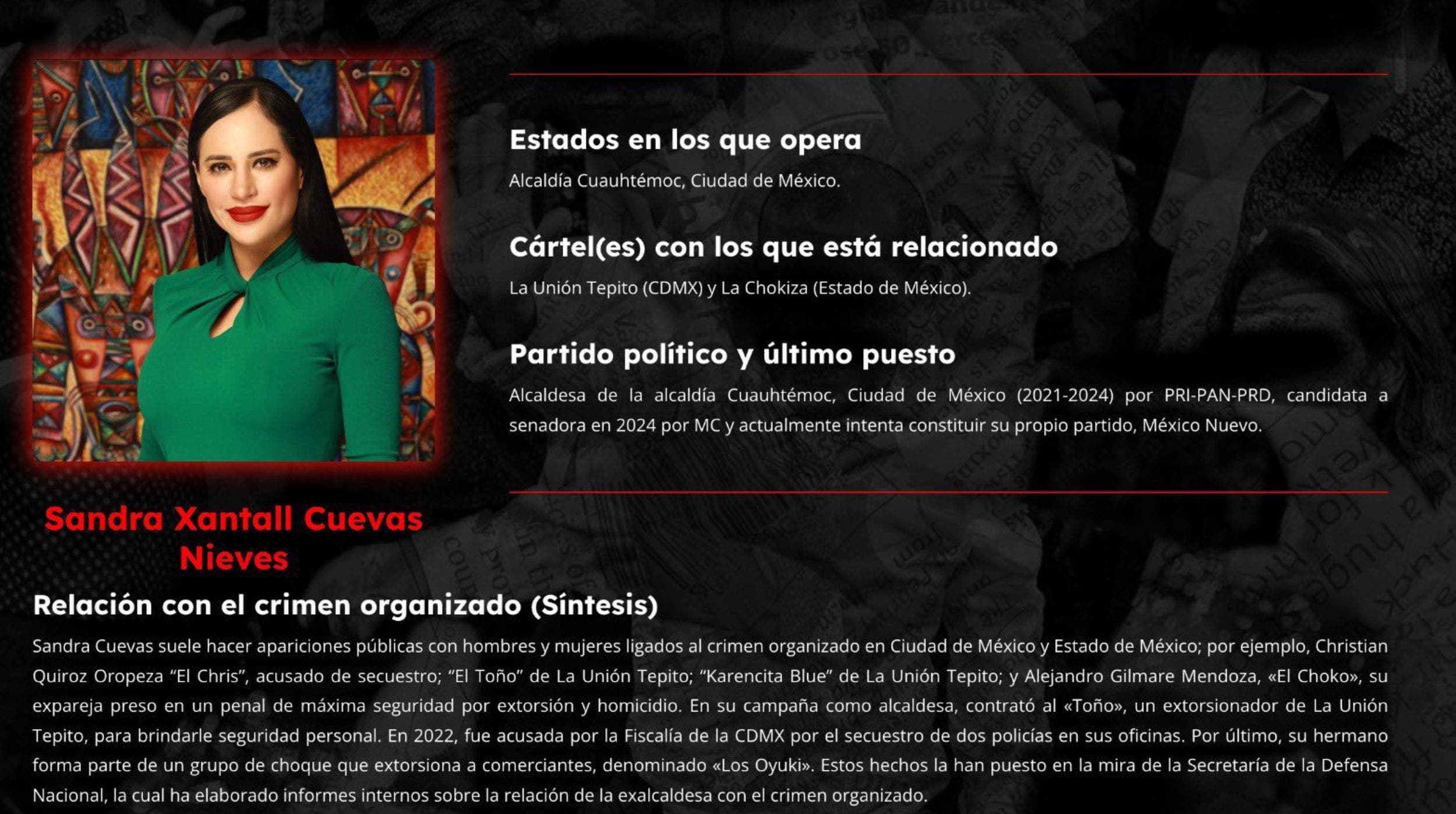 Ciudad de México.– En un escándalo que sacude las entrañas del poder político en la capital mexicana, un informe interno de la Secretaría de la Defensa Nacional (SEDENA) de 2023 revela presuntos lazos profundos entre Sandra Cuevas, exalcaldesa de Cuauhtémoc, y grupos criminales como La Unión Tepito y La Chokiza.