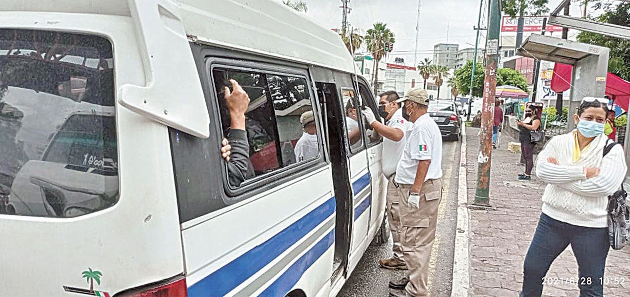 Se revisaron 125 unidades del transporte público con itinerario fijo y se tuvo un alcance con mil 279 personas aproximadamente, siendo siete usuarios apercibidos por no usar cubrebocas dentro de las unidades.