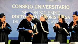 Enrique Graue Wiechers, rector de la Universidad Autónoma Nacional de México (UNAM), recibió el doctorado Honoris Causa por parte de la UAEM. En sesión solemne del Consejo Universitario, celebrada en el auditorio ‘Emiliano Zapata’, Gustavo Urquiza Beltrán, rector de la Universidad Autónoma del Estado de Morelos (UAEM) dio el máximo reconocimiento que entrega universidad para su homólogo.