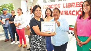 La alcaldesa de Temixco, Juanita Ocampo Domínguez, presidió la entrega de reconocimientos a los establecimientos que participaron en las ponencias de Espacios libres de Discriminación y Turismo con inclusión social, en compañía de integrantes del Cabildo y del gabinete. El objetivo es disfrutar una estancia en Temixco con calidad e inclusión y que los prestadores de servicios brinden un espacio libre de discriminación y promuevan la paz.
