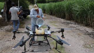 Fumigan campo de Xochitepec con drones