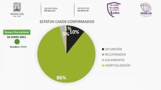 La Secretaría de Salud informa que a la fecha en Morelos se han estudiado 164 mil 903 personas, de las cuales se han confirmado 34 mil 286 con coronavirus COVID-19; 68 están activas, descartado 128 mil 809 y están como sospechosos mil 808; se han registrado 3 mil 643 defunciones. Los nuevos pacientes son 16 mujeres de Ayala, Cuautla, Cuernavaca, Emiliano Zapata, Jiutepec, Ocuituco y Yautepec; de las cuales 10 se encuentran aisladas en sus hogares, 2 hospitalizadas graves y 4 decesos.