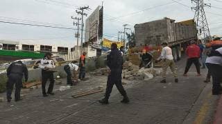 Tráiler tira blocks y queda detenido en plena subida de avenida Teopanzolco, de Cuernavaca