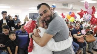 El alcalde de Coatlán del Río, Celso Nieto Estrada, viajó junto con un grupo de personas de la tercera edad del municipio como parte del programa “Corazón de Plata”, quienes cumplieron su sueño de reunirse con sus hijos en Houston, Texas, Estados Unidos, tras dejar de verlos durante varios años; como doña Jovita que se reencontró con su hijo Francisco. Foto: Especial / DDM
