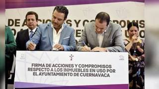 CUERNAVACA, MORELOS.- El Gobierno del Estado y el Ayuntamiento de Cuernavaca reiteran trabajar en coordinación en beneficio de la ciudadanía. Ayer, en Palacio de Gobierno Cuauhtémoc Blanco Bravo, gobernador del estado, y Francisco Antonio Villalobos Adán, presidente municipal de la capital, firmaron la carta intención entre el Gobierno del Estado y el Ayuntamiento de Cuernavaca, que tiene como fin sentar las bases de colaboración, para atender un pendiente histórico.