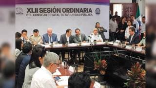 CUERNAVACA, MORELOS.- El Gobernador Cuauhtémoc Blanco Bravo encabezó la XLII sesión ordinaria del Consejo de Seguridad en el que se presentó la Guardia Nacional y sus lineamientos ante los presidentes municipales. En esta sesión, Cuauhtémoc Blanco Bravo refrendó su compromiso con los morelenses para combatir la inseguridad, por lo que convocó a mantener el trabajo coordinado entre los tres niveles de Gobierno, y también llamó a la población a sumarse a través de sus denuncias.