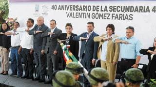 CUERNAVACA, MORELOS.- La Secundaria Federal Número 4 “Valentín Gómez Farías” de Cuernavaca celebró su 40 aniversario, con un acto cívico-cultural y la presencia de autoridades del Gobierno del Estado; recordaron que han egresado decenas de generaciones. Ayer por la mañana, alumnos, profesores, ex alumnos y autoridades educativas se reunieron en la cancha de usos múltiples del plantel educativo para llevar a cabo honores a la bandera, reconocer a personas destacadas que han pasado por las aulas y presentar actividades culturales.