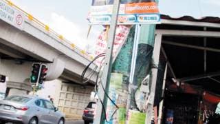 El mobiliario urbano sirve muy bien a quienes ofrecen diversos servicios, como estos postes en colonia Buenavista, donde están cubiertos de anuncios nuevos y restos de ofertas pasadas.Foto: Luis Flores / DDM
