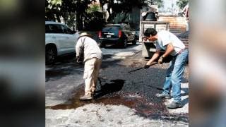 Personal de Obras Públicas del Ayuntamiento de Cuernavaca vuelve a bachear el circuito "Adolfo López Mateos", a fin de agilizar la circulación, luego del cierre de dos andenes del mercado.Foto: Especial / DDM