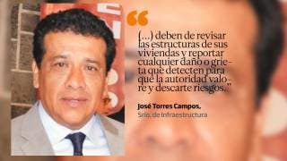Cuernavaca, MORELOS.- El secretario de Infraestructura, Obras y Servicios Públicos del municipio, José Torres Campos, llama a la población a supervisar sus casas, con el fin de detectar alguna afectación tras el sismo de la noche del jueves.La mañana de ayer, en coordinación con el área operativa de Protección Civil del municipio y el estado, recorrió planteles educativos para supervisar la infraestructura de los planteles educativos, para descartar daños y riesgos para los estudiantes.