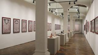 Pablo Vigil es un artista visual egresado del Centro Morelense de las Artes (CMA) y en esta galería muestra una colección de tres años de labor.Su técnica se basa en bolígrafo sobre papel y figuras hechas con cerámica, las cuales representan mundos y personajes futuristas, literarios y absurdos.En entrevista, comentó que se siente muy atraído por la simetría y los dibujos parecidos al tarot, que es lo que abunda en su obra, así como los colores negro y rojo.