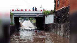 Una mujer logró salir ilesa, luego de que la camioneta en la que viajaba quedara varada en el paso a desnivel de Xochitepec, derivado del desborde que se presentó en un canal por las fuertes lluvias de ayer en la madrugada.Se trata de Xóchitl, de 25 años, quien viajaba en su camioneta Chevrolet, roja, placas PYN-5101 de Morelos, la cual logró salir a tiempo de su vehículo.