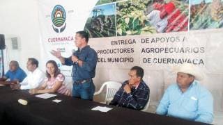 Cuernavaca, Morelos.- Productores del campo recibieron los primeros apoyos para la compra de fertilizante, maíz y sorgo, con la finalidad de que este ciclo agrícola Primavera-Verano 2017 sea más rentable y más productivo.Esto permitirá un beneficio de 463 productores de los 10 ejidos de la capital. En esta primera etapa, tocó a Santa María Ahuacatitlán.Los productores recibieron vales para maíz para una superficie de 198 hectáreas, 61 para sorgo y 384 para fertilizante, para incrementar el rendimiento, señaló Óscar Santos Martínez, director de Desarrollo Rural Sustentable.