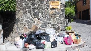 Vecinos de la colonia Chapultepec no respetan sus propias reglas y acumulan bolsas de basura bajo el letrero que lo prohíbe en la esquina de las calles Coahuila y del Sol.Foto: Valeria Ortega / DDM