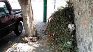 En la avenida Palmira, la actividad de desramar árboles es muy frecuente, pero también lo es que la basura, aunque orgánica, la dejen estorbando el paso en las de por sí estrechas banquetas.Foto: Luis Flores / DDM