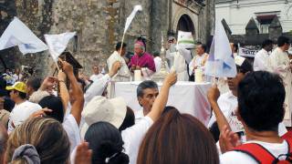 Llevan a cabo en Cuernavaca la "Marcha por la familia y la Paz", organizada por el Obispo de la Diócesis de Cuernavaca, Ramón Castro Castro; desde muy temprano, contingentes caminaron por las calles del centro, hasta llegar a Catedral, donde concluyeron con una homilía.Foto: Valeria Ortega / DDM