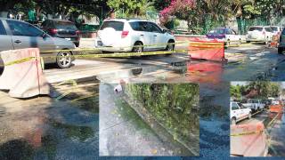 Cuernavaca, Morelos.- Otra filtración se suma a las innumerables que se pueden encontrar en la ciudad. Esta se ubica en una pared del Circuito ALM, donde el agua brota sin que personal de SAPAC haga algo por impedirlo, mientras se fugan miles de litros de aguas negras que desprenden un olor fétido.Fotos: Valeria Ortega / DDM
