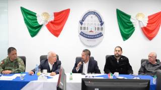El gobernador Samuel Sotelo Salgado encabezó la última Mesa de Coordinación Estatal para la Construcción de la Paz de manera presencial, donde asistió Juan Salgado Brito, próximo secretario de Gobierno, quien agradeció a las y los integrantes la invitación para participar en la sesión.