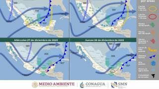 La Comisión Estatal del Agua (Ceagua) informa sobre el pronóstico del tiempo para el periodo del 25 al 28 de diciembre, en el que se prevé cielo medio nublado a nublado y posibles chubascos ligeros, con temperaturas máximas que rondarán en un rango de 24 a 35 °C.