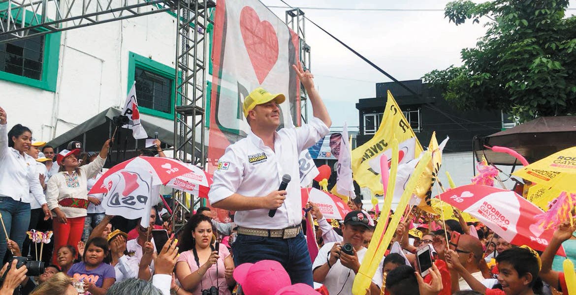 Aquí está su Gayo para recuperar la paz y seguridad de ustedes. Quiero verlos a los ojos y trabajar de la mano con ustedes." Rodrigo Gayosso Cepeda, candidato a la gubernatura.