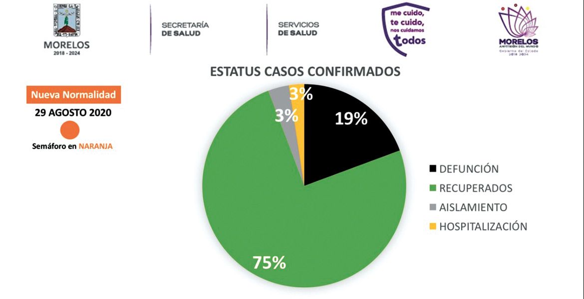 Los municipios que encabezan la epidemia son: Cuernavaca, con mil 304 casos COVID-19, y le siguen Cuautla, con 806; Jiutepec, con 497, y Ayala, con 259.