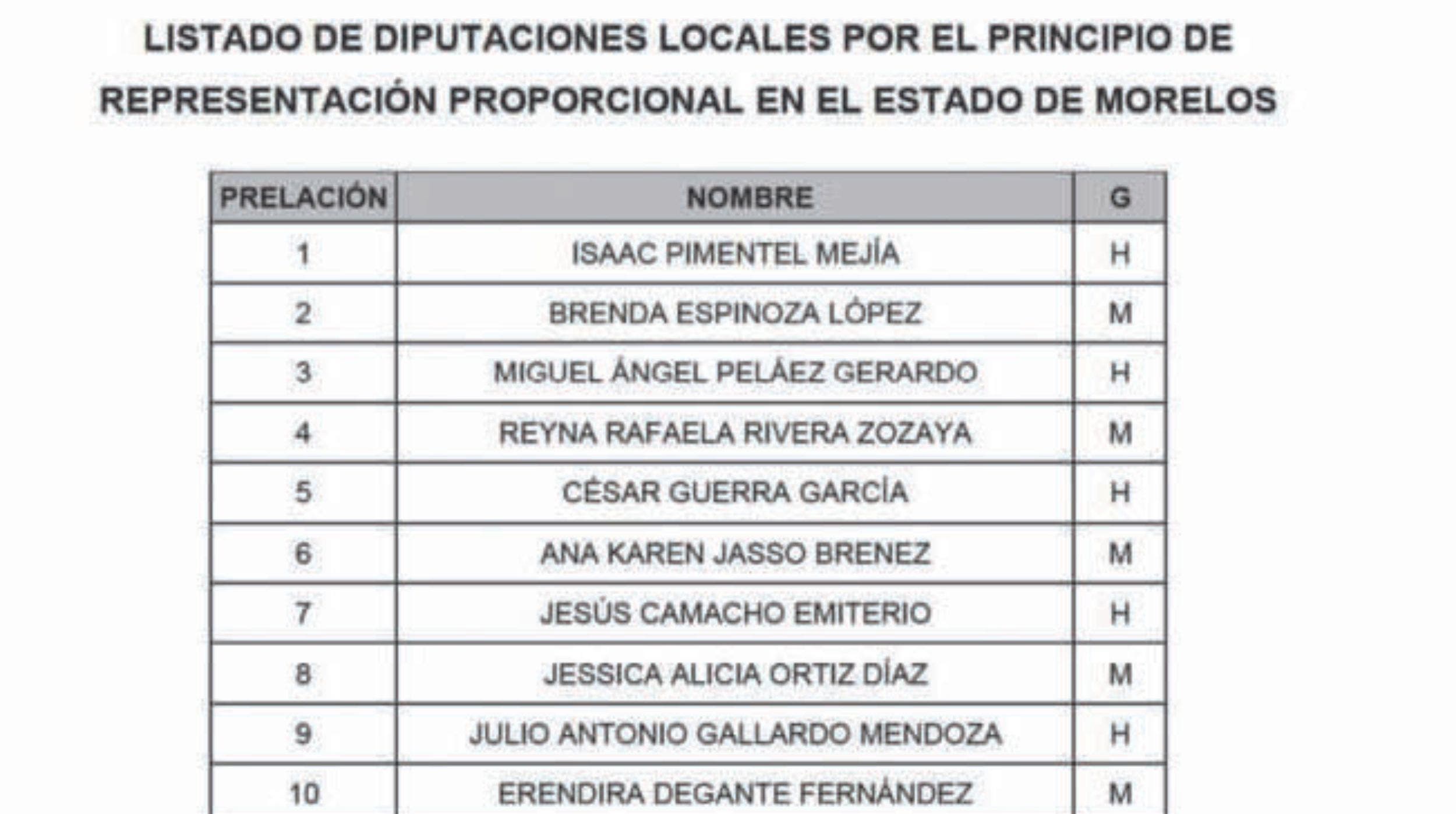 La lista final de candidatos de todos los partidos se dará a conocer una vez que se haya cerrado el registro y las autoridades electorales validen que cumplan con todos los requisitos establecidos en el Código de Instituciones y Procedimientos Electorales para el Estado de Morelos, así como en los Lineamientos para el Registro de Candidatas y Candidatos.