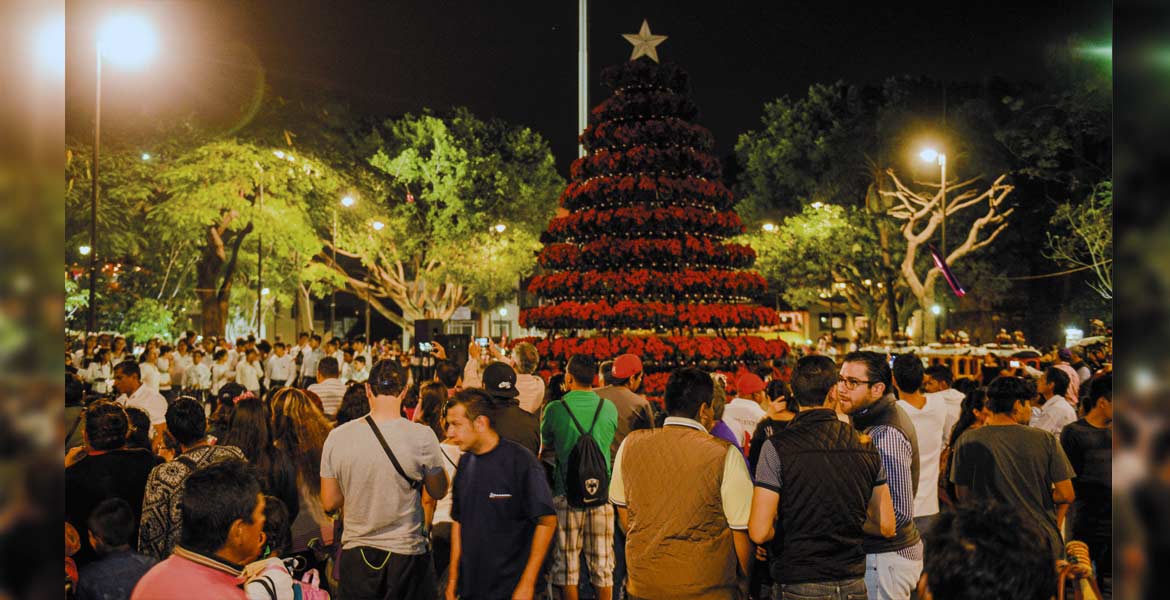 Ayer, en punto de las 19:00 horas, se dio el conteo regresivo para que se encendieran las luces del árbol de navidad, que mide 10 metros de altura por 6 de diámetro y que está rodeado por más de mil 500 plantas de nochebuena.