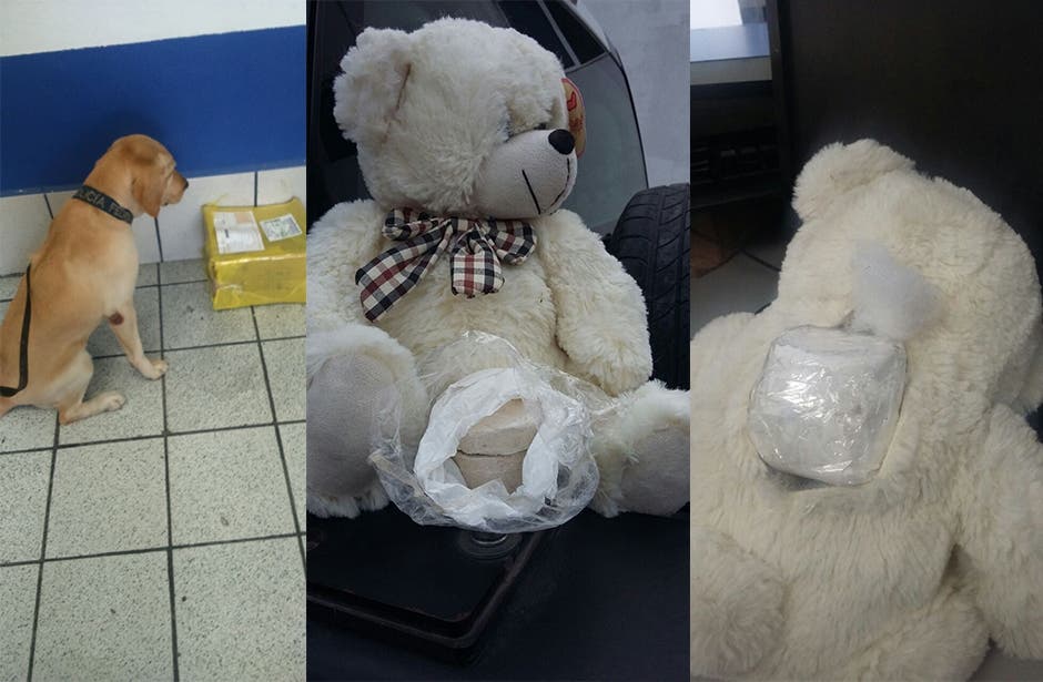 Agentes de la Policía Federal decomisaron 100 gramos de heroína que iban ocultos en el interior de un oso de peluche al realizar una inspección en una paquetería.