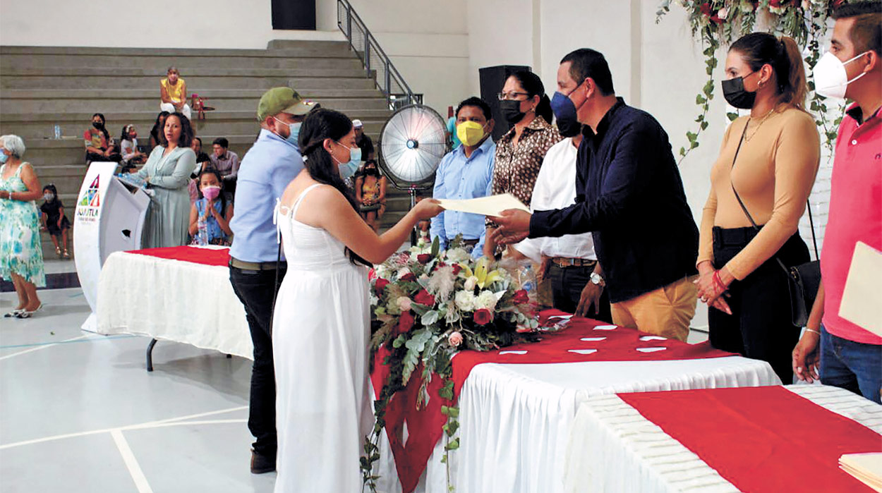 El gobierno municipal de Jojutla, que preside Juan Ángel Flores Bustamante felicita a las parejas, quienes estuvieron acompañadas por sus familiares y amigos, al formalizar su unión en la ceremonia a cargo de los oficiales del Registro Civil 01 y 02, Heriberto Castrejón Rivera y Erika Martínez Ortiz, respectivamente.