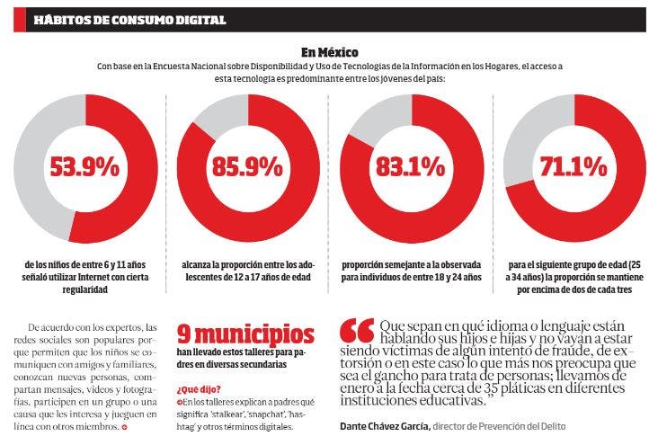 "Les estamos haciendo mucho hincapié en que tienen que acercarse a sus hijos para conocer el lenguaje digital, que sepan qué es "stalkear", qué es un "snapchat", que sepan qué es un "hashtag" y todo ese lenguaje digital se les está enseñando a los papás", explicó Dante Chávez García, director de Prevención del Delito.