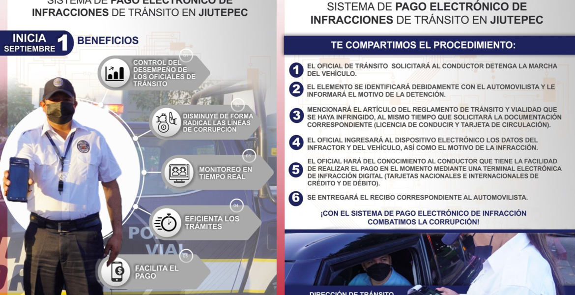 El Ayuntamiento de Jiutepec informa que a partir del jueves 1 de septiembre del año en curso, entrará en operación el sistema de pago electrónico de infracciones de tránsito en jiutepec.
