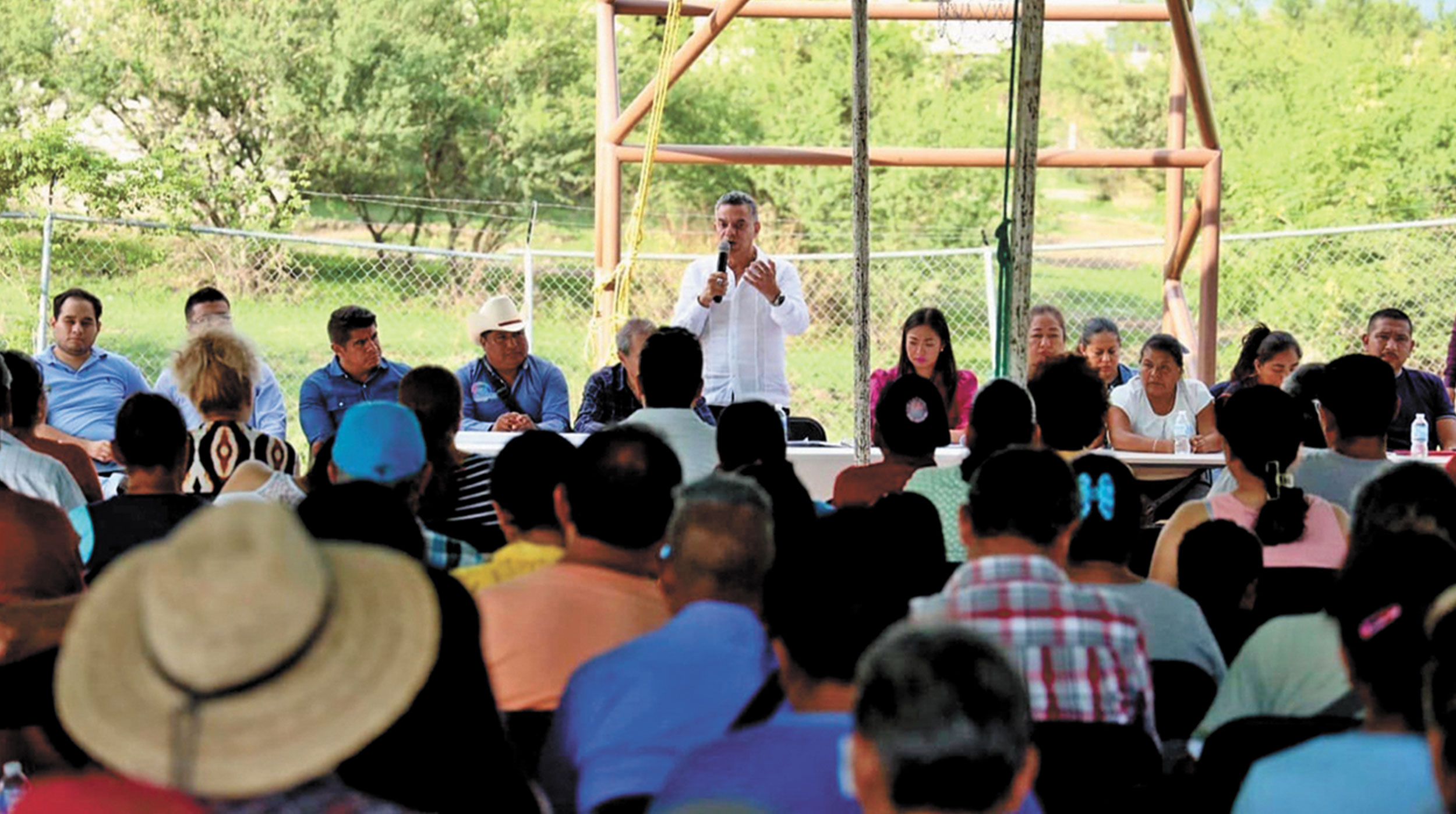 El secretario Ejecutivo de la Comisión Estatal del Agua (Ceagua), Jaime Juárez López, junto a la alcaldesa de Atlatlahucan, Alma Delia Reyes Linares, y los integrantes del Cabildo sostuvieron una reunión con vecinos de la localidad de Rancho Cuachizolotera, a fin de informar sobre los plazos y los trabajos realizados en una obra de construcción del sistema de agua potable.
